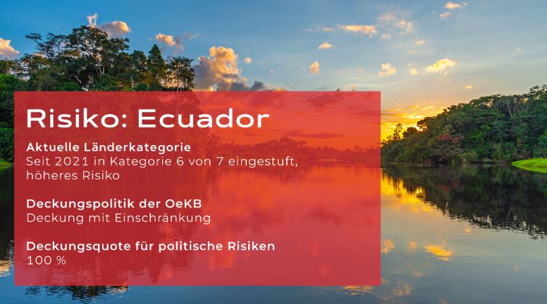 Ecuador, an der Westküste Südamerikas gelegen, ist eine Präsidialrepublik. Der Andenstaat galt lange Zeit als politisch sicher und relativ stabil, ist aber seit jeher von starken Interessenskonflikten und Ungleichgewichten geprägt. Seit einigen Jahren ist das Land mit zunehmender Gewalt und steigenden Mordraten konfrontiert, die häufig mit der Drogenmafia in Verbindung gebracht werden. Ausnahmezustände und nächtliche Ausgangssperren sind an der Tagesordnung, worunter das Geschäfts- und Investitionsklima leidet.