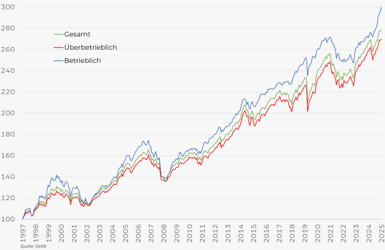 Informieren Sie sich über die Performance der österreichischen Pensionskassen und weitere Kennzahlen (Volatilität und Asset Allocation), die OeKB quartalsweise errechnet. Das 1. Quartal 2026 wird voraussichtlich ab dem 18.05.2026 veröffentlicht.
